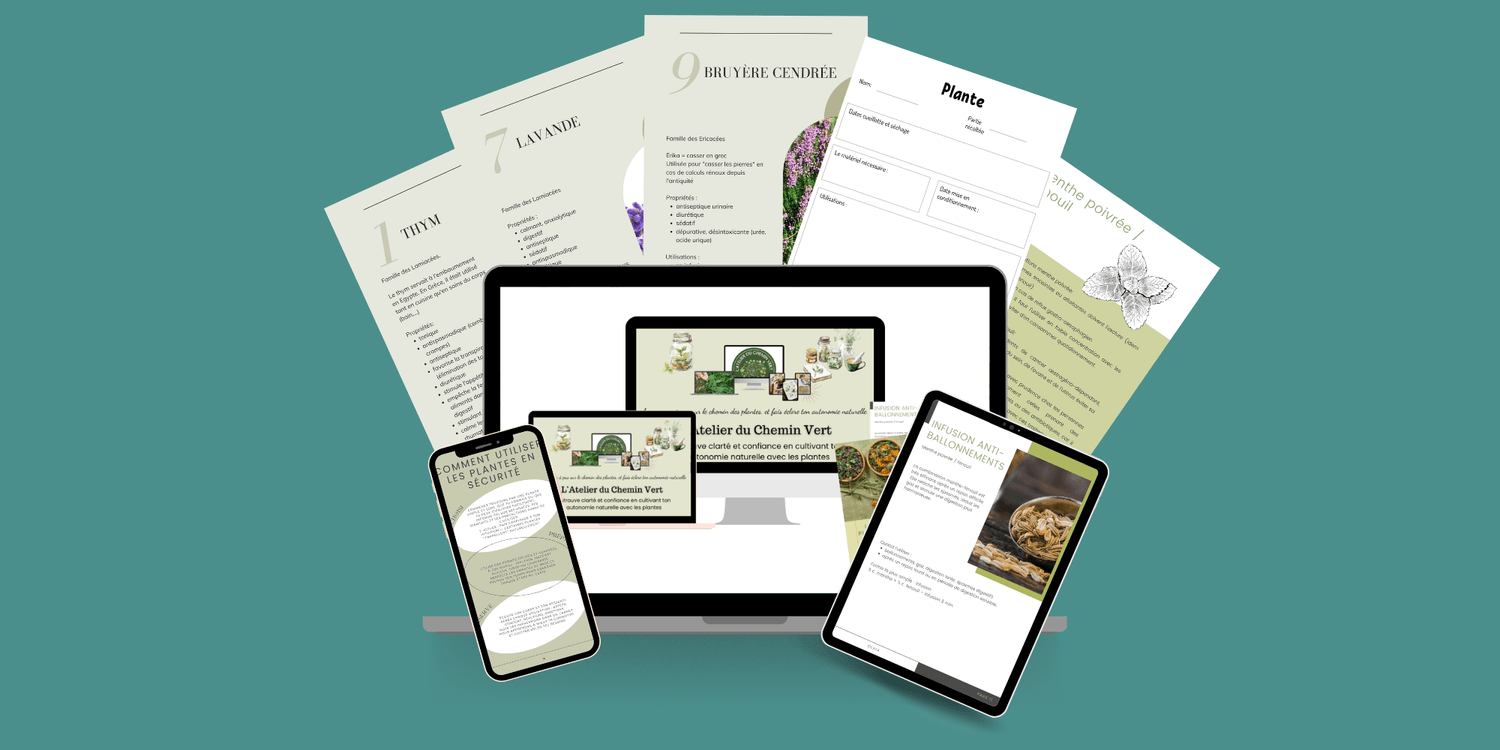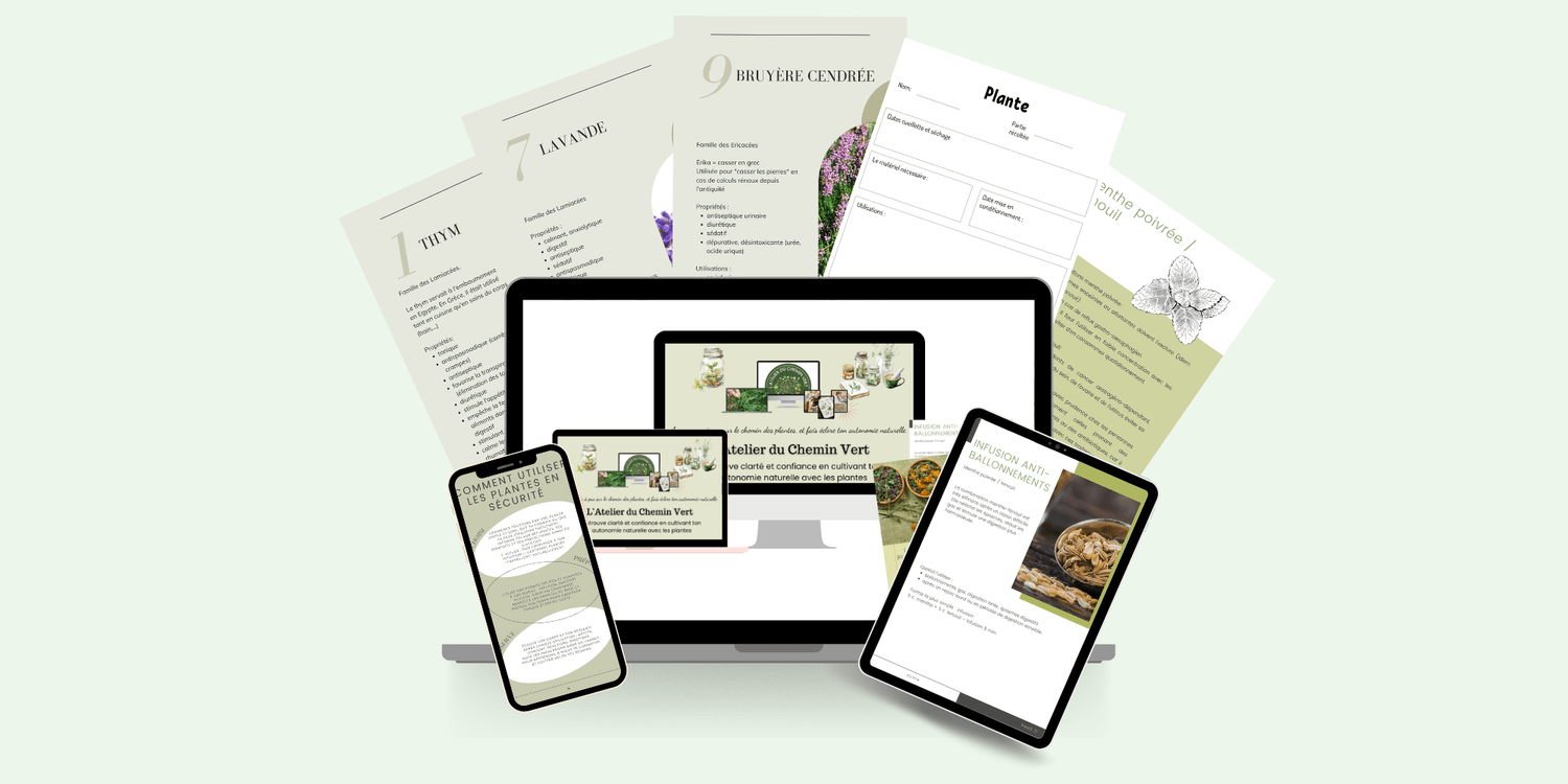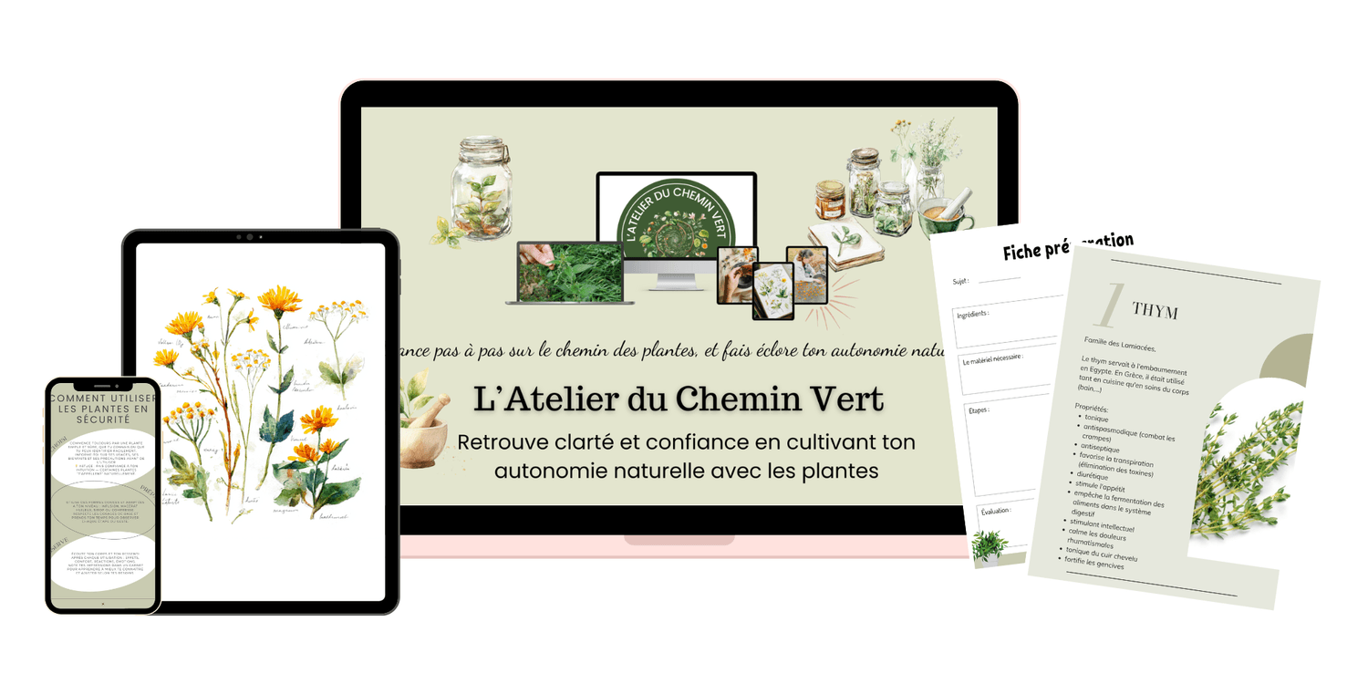 En rejoignant l’Atelier du chemin vert, tu auras immédiatement accès à un espace complet pour apprendre, pratiquer et avancer avec les plantes sans te sentir seule ni dépassée.