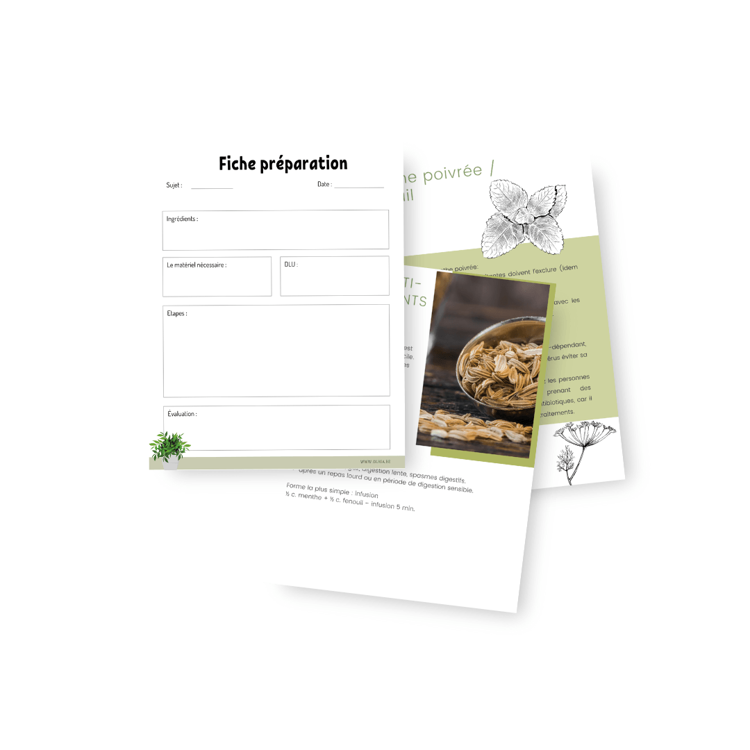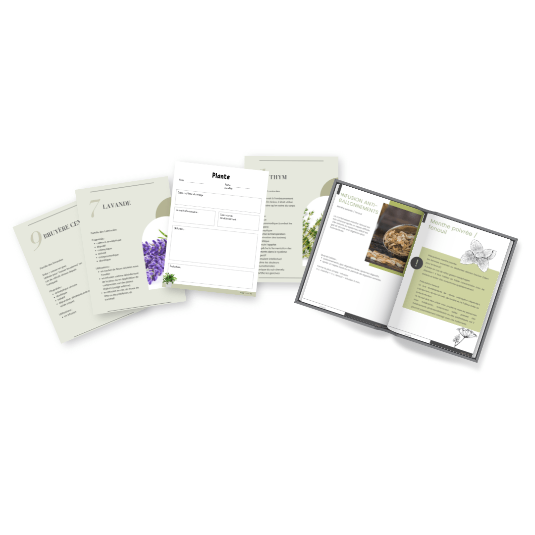 Tu disposes de supports clairs et faciles à consulter : bases de l’herboristerie, checklists pour te repérer, fiches recettes pour créer tes premiers remèdes. Ces documents t’aident à garder l’information sous la main et à passer à l’action sans avoir à tout retenir.
